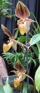 With over 30,000 species in this flowering plant family, the plant systematics is a little overwhelming. So many types of orchids! I noticed this year at the show I took more pictures of the Paphiopedilum group, AKA, Paph or Lady Slipper Orchids. I must have been more attracted to them so, I bought Paphiopedilum “Oriental Limelight”. I think it will do well in my bathroom which has a south facing window. We’ll see. For more information about growing orchids, visit the website of the American Orchid Society http://www.aos.org or the Greater Lansing Orchid Society at http://www.greaterlansingorchidsociety.com