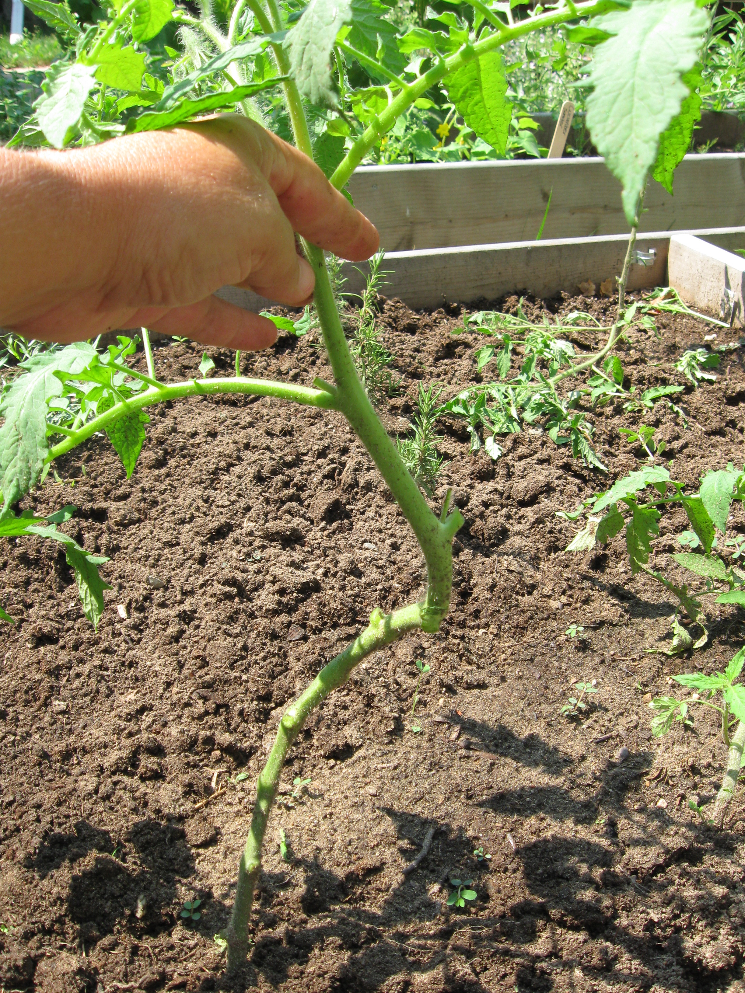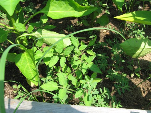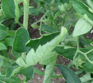 Scenario # 2: On one of my tomato plants the leaves have been curling in an upward way. Almost to the point where they look like a tube. I can see that the little cherry tomatoes are developing okay, and noticed that the other tomato plants next to it didn’t look the same. They are different varieties, but the leaves just looked odd. Maybe they have a virus or something. Problem or not?